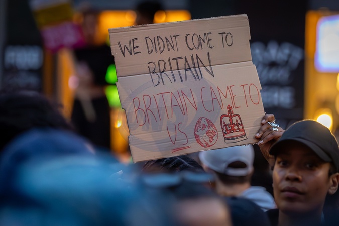 Walthamstow, London, UK. Wednesday 7th August 2024.Thousands of people including local residents came together in Walthamstow Central for a large unity rally outside Waltham Forest Immigration Bureau. The Community came together to defend the immigration bureau as there was a threat that the English defense league (EDL) were going to turn up to the immigration bureau., Credit:Abdullah Bailey / Avalon