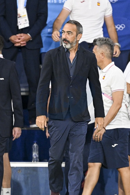 Youri Djorkaeff lors de la finale qui oppose la France à l'Espagne pour les Jeux Olympiques au Parc des Princes à Paris, le 9 aout 2024. © Jacovides-Perusseau/Bestimage Celebrities during the final football match between France and Spain during the Paris 2024 Olympic Games (Olympics) at the Parc des Princes in Paris, France, August 9, 2024.