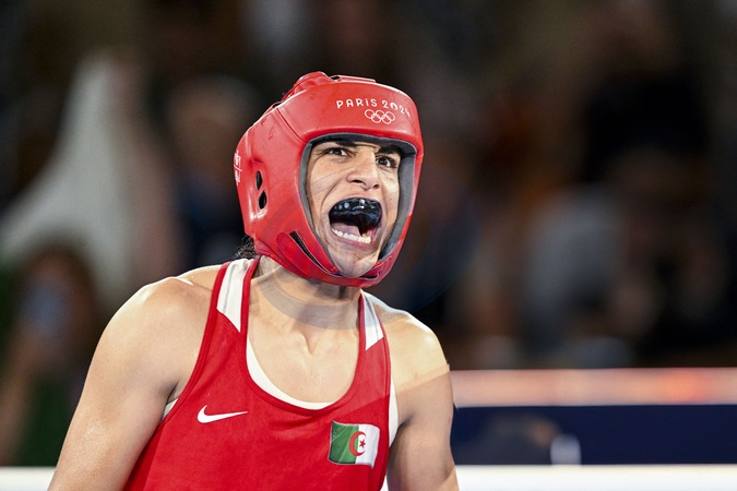 Imane Khelif devient championne olympique en -66 kg aux JO de Paris 2024, le 9 aout 2024. L'Algérienne Imane Khelif, dont la féminité a été remise en question, devient championne olympique en - 66 kg, en battant la Chinoise Y.Liu, en finale aux Jeux Olympiques de Paris2024 (JO), le 9 août 2024. © Jacovides-Perusseau / Bestimage Algerian Imane Khelif becomes Olympic champion in -66 kg at the Paris2024 Olympic Games (JO), on August 9th, 2024.