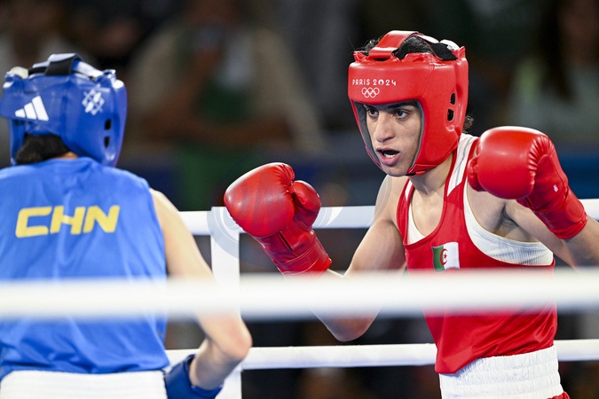 Imane Khelif devient championne olympique en -66 kg aux JO de Paris 2024, le 9 aout 2024. L'Algérienne Imane Khelif, dont la féminité a été remise en question, devient championne olympique en - 66 kg, en battant la Chinoise Y.Liu, en finale aux Jeux Olympiques de Paris2024 (JO), le 9 août 2024. © Jacovides-Perusseau / Bestimage Algerian Imane Khelif becomes Olympic champion in -66 kg at the Paris2024 Olympic Games (JO), on August 9th, 2024.