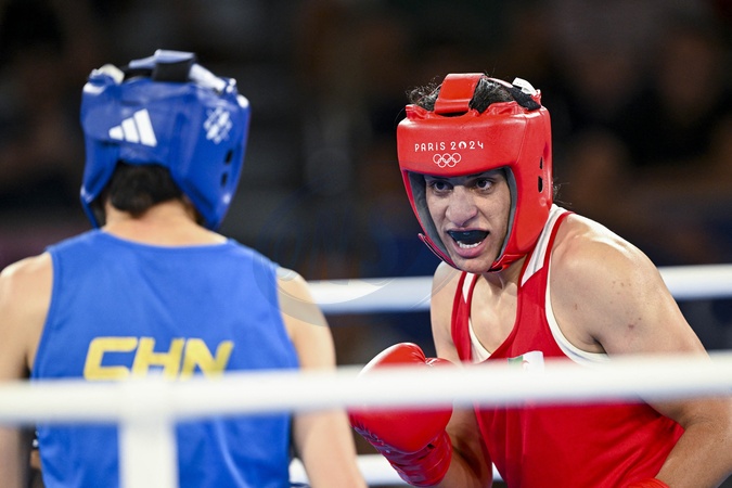Imane Khelif devient championne olympique en -66 kg aux JO de Paris 2024, le 9 aout 2024. L'Algérienne Imane Khelif, dont la féminité a été remise en question, devient championne olympique en - 66 kg, en battant la Chinoise Y.Liu, en finale aux Jeux Olympiques de Paris2024 (JO), le 9 août 2024. © Jacovides-Perusseau / Bestimage Algerian Imane Khelif becomes Olympic champion in -66 kg at the Paris2024 Olympic Games (JO), on August 9th, 2024.