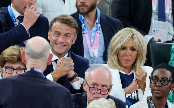 Emmanuel Macron, Brigitte Macron - Les célébrités en tribunes pendant la finale de basketball opposant les Etats-Unis à la France (98-87) lors des Jeux Olympiques de Paris 2024 (JO) à l'Arena Bercy, à Paris, France, le 10 août 2024. © Jacovides-Perusseau/Bestimage Celebrities in the stands during the Final basketball match between US and France during the Paris 2024 Olympic Games (Olympics) at the Arena Bercy in Paris, France, August 10, 2024.