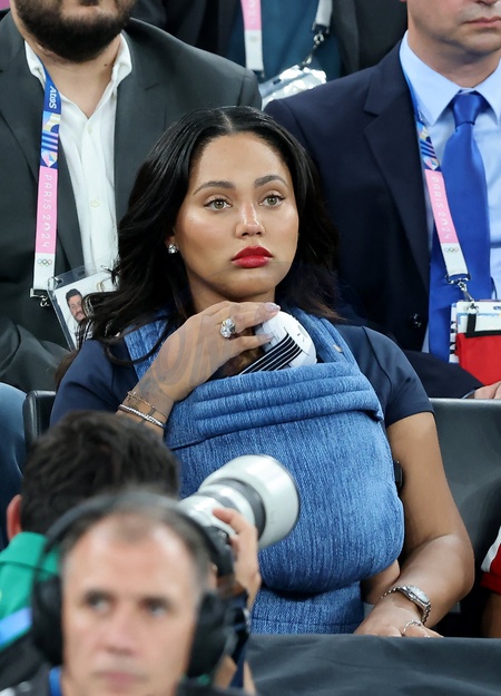 Ayesha Curry - Les célébrités en tribunes pendant la finale de basketball opposant les Etats-Unis à la France (98-87) lors des Jeux Olympiques de Paris 2024 (JO) à l'Arena Bercy, à Paris, France, le 10 août 2024. © Jacovides-Perusseau/Bestimage Celebrities in the stands during the Final basketball match between US and France during the Paris 2024 Olympic Games (Olympics) at the Arena Bercy in Paris, France, August 10, 2024.