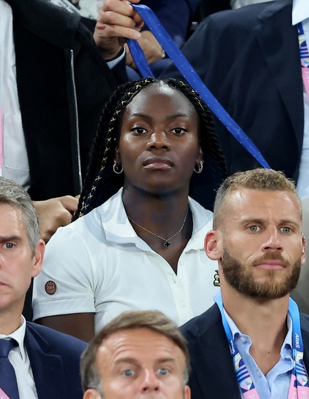 Clarisse Agbegnenou - Les célébrités en tribunes pendant la finale de basketball opposant les Etats-Unis à la France (98-87) lors des Jeux Olympiques de Paris 2024 (JO) à l'Arena Bercy, à Paris, France, le 10 août 2024. © Jacovides-Perusseau/Bestimage Celebrities in the stands during the Final basketball match between US and France during the Paris 2024 Olympic Games (Olympics) at the Arena Bercy in Paris, France, August 10, 2024.
