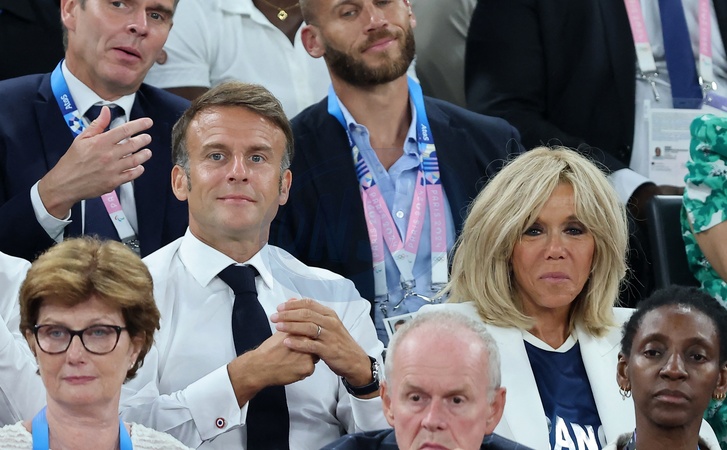 Emmanuel Macron, Brigitte Macron - Les célébrités en tribunes pendant la finale de basketball opposant les Etats-Unis à la France (98-87) lors des Jeux Olympiques de Paris 2024 (JO) à l'Arena Bercy, à Paris, France, le 10 août 2024. © Jacovides-Perusseau/Bestimage Celebrities in the stands during the Final basketball match between US and France during the Paris 2024 Olympic Games (Olympics) at the Arena Bercy in Paris, France, August 10, 2024.