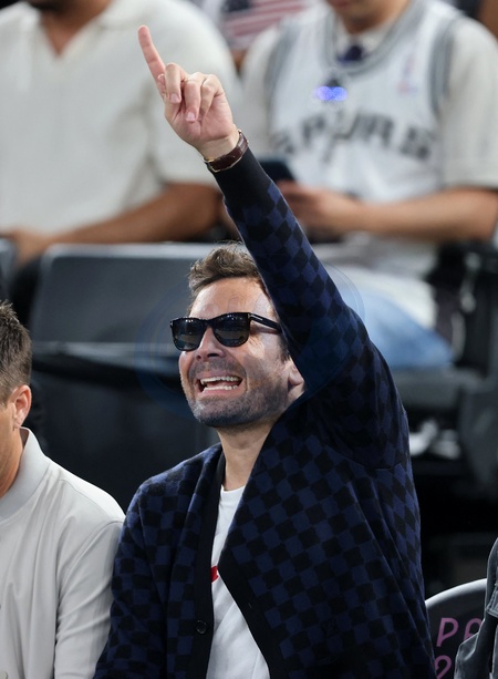 Jimmy Fallon - Les célébrités en tribunes pendant la finale de basketball opposant les Etats-Unis à la France (98-87) lors des Jeux Olympiques de Paris 2024 (JO) à l'Arena Bercy, à Paris, France, le 10 août 2024. © Jacovides-Perusseau/Bestimage Celebrities in the stands during the Final basketball match between US and France during the Paris 2024 Olympic Games (Olympics) at the Arena Bercy in Paris, France, August 10, 2024.