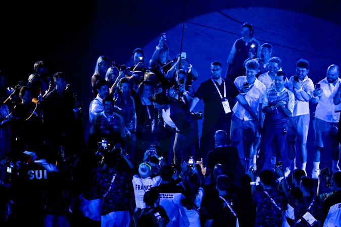 Tom Cruise, accroché à un fil, descend du toit du stade de France pour prendre le drapeau olympique