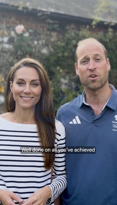 Pictures must credit: Prince and Princess of Wales Kate Middleton gave fans a boost when she made a surprise appearance alongside husband Prince William with a star-studded message to Team GB. Mother-of-three Kate, 42, the Princess of Wales, who is having cancer treatment, and William , also 42, enlisted a string of stars for their uplifting video. The princess has made few public appearances since starting her chemotherapy treatment and stepping back from royal duties in January. She revealed she was having cancer treatment in March and has since been seen in public only at Trooping the Colour and the Wimbledon men's singles final. In the video, she stands alongside unshaven William to congratulate British athletes. Kate says:”From all of us watching at home, congratulations to Team GB.” William wearing an official blue Team GB top, then adds: "Well done to Team GB you've been an inspiration to us all.” In an accompanying social media post on their account, the royal couple said: "Well done @teamgb, what an incredible journey! "Every athlete showed immense dedication, heart and passion. You made us all so proud! "Here's to celebrating every triumph @paris2024 and looking forward to more from @paralympicsgb_official later in the summer.” Social media was quickly flooded with messages praising the couple. The video also included a brief message from David Beckham who days: "Hey Team GB, we are so proud of you, congratulations.” Picture supplied by JLPPA