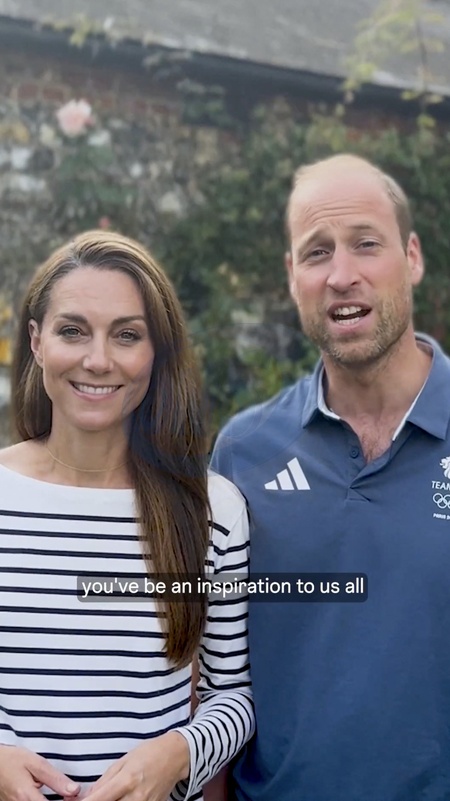 Książę William, książę Walii i Catherine (Kate) Middleton, księżna Walii, David Beckham gratulują brytyjskim sportowcom na filmie po Igrzyskach Olimpijskich Paryż 2024