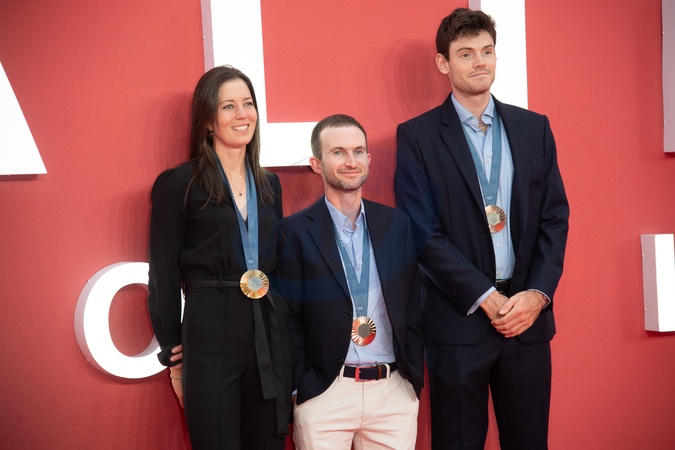 (L-R) - Olympians Emily Craig, Henry Fieldman, Freddie Davidson attends The UK Gala of "Alien: Romulus" at Cineworld, Leicester Square in London, England, UK on Wednesday 14 August, 2024., Credit:Justin Ng / Avalon