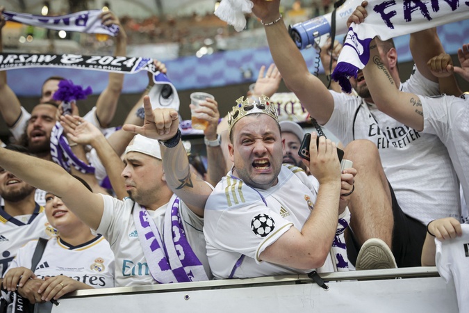 Ambiance avec des supporters de Real Madrid - Match de football "Real Madrid vs Atlanta" lors de la Supercoupe de l'UEFA. Le 14 août 2024 © Elyxandro CEGARRA / Panoramic / Bestimage