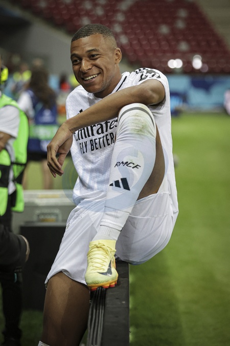 9 KYLIAN MBAPPE (RM) and wilfried mbappe Real Madrid celebrate victory after the UEFA Super Cup 2024 - Match de football "Real Madrid vs Atlanta" lors de la Supercoupe de l'UEFA. Le 14 août 2024 © Elyxandro CEGARRA / Panoramic / Bestimage