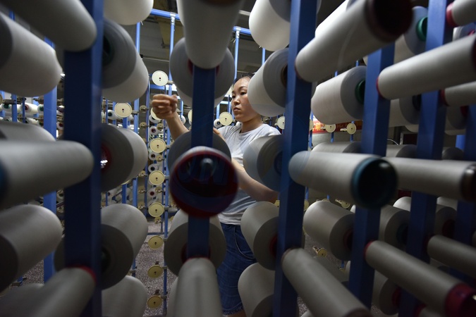A woman works in a silk weaving factory in Fuyang city in central China's Anhui province Monday, July 15, 2024., Credit:AN MING / Avalon