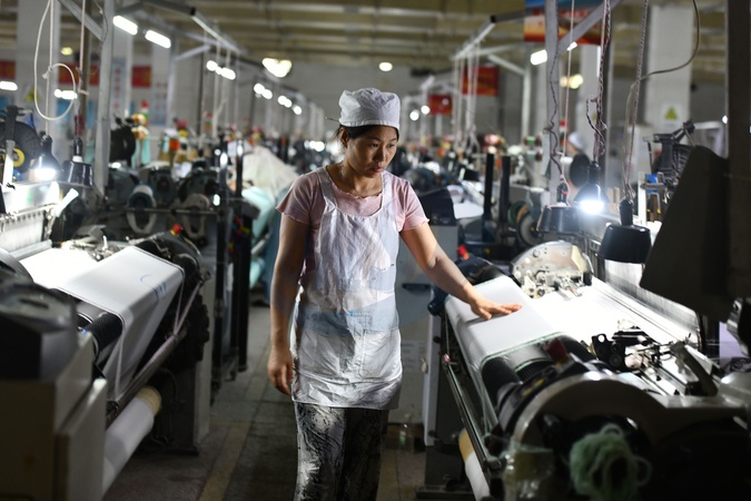 A woman works in a silk weaving factory in Fuyang city in central China's Anhui province Monday, July 15, 2024., Credit:AN MING / Avalon