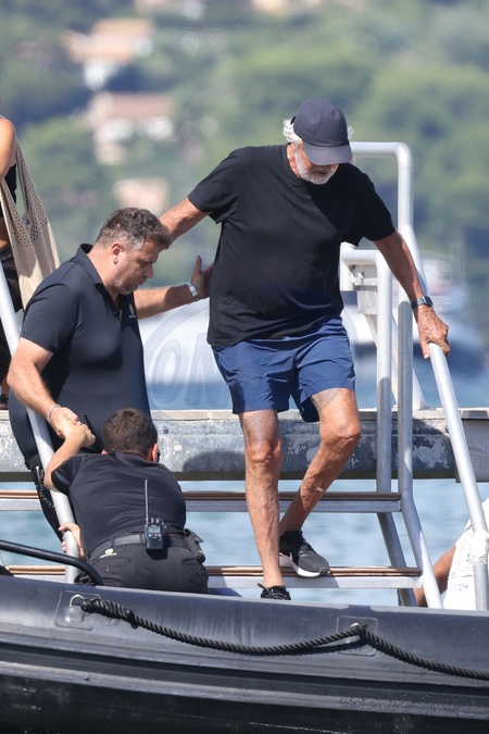 Flavio Briatore et Elisabetta Gregoraci embarquent sur une annexe au Club 55 à Saint-Tropez le 17 août 2024 Flavio Briatore and Elisabetta Gregoraci board a tender at Club 55 in Saint-Tropez on 17 August 2024