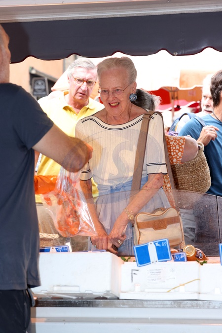 Semi-Exclusif - La reine Margrethe II de Danemark se rend comme tous les ans au marché de Cahors le 17 août 2024. © Jean-Marc Lhomer / Bestimage Semi-Exclusive - Queen Margrethe II of Denmark goes to the Cahors market like every year on August 17, 2024.