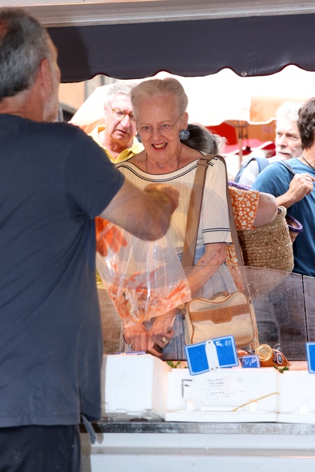 Semi-Exclusif - La reine Margrethe II de Danemark se rend comme tous les ans au marché de Cahors le 17 août 2024. © Jean-Marc Lhomer / Bestimage Semi-Exclusive - Queen Margrethe II of Denmark goes to the Cahors market like every year on August 17, 2024.