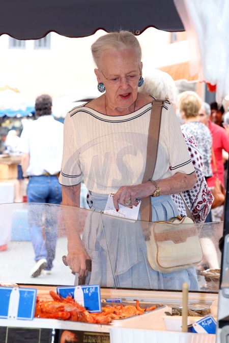 Semi-Exclusif - La reine Margrethe II de Danemark se rend comme tous les ans au marché de Cahors le 17 août 2024. © Jean-Marc Lhomer / Bestimage Semi-Exclusive - Queen Margrethe II of Denmark goes to the Cahors market like every year on August 17, 2024.