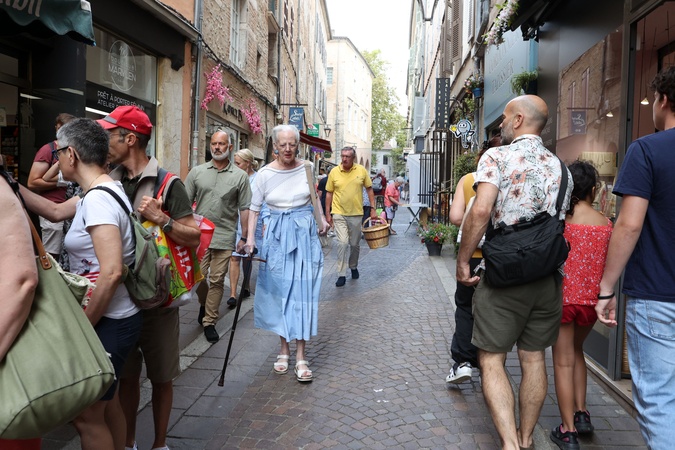 Semi-Exclusif - La reine Margrethe II de Danemark se rend comme tous les ans au marché de Cahors le 17 août 2024. © Jean-Marc Lhomer / Bestimage Semi-Exclusive - Queen Margrethe II of Denmark goes to the Cahors market like every year on August 17, 2024.