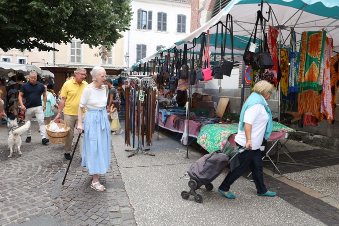 Semi-Exclusif - La reine Margrethe II de Danemark se rend comme tous les ans au marché de Cahors le 17 août 2024. © Jean-Marc Lhomer / Bestimage Semi-Exclusive - Queen Margrethe II of Denmark goes to the Cahors market like every year on August 17, 2024.