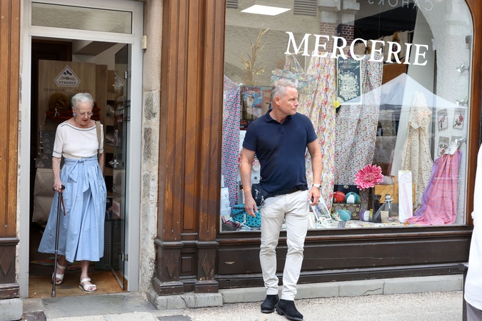 Semi-Exclusif - La reine Margrethe II de Danemark se rend comme tous les ans au marché de Cahors le 17 août 2024. © Jean-Marc Lhomer / Bestimage Semi-Exclusive - Queen Margrethe II of Denmark goes to the Cahors market like every year on August 17, 2024.