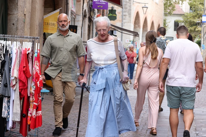 Semi-Exclusif - La reine Margrethe II de Danemark se rend comme tous les ans au marché de Cahors le 17 août 2024. © Jean-Marc Lhomer / Bestimage Semi-Exclusive - Queen Margrethe II of Denmark goes to the Cahors market like every year on August 17, 2024.