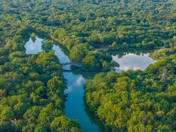 A view of a bridge in the massive Xixi Wetland in Hangzhou city in east China's Zhejiang province Saturday, Aug. 03, 2024., Credit:FEATURECHINA / Avalon