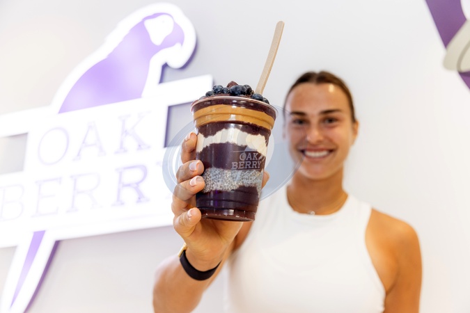 New York, NY – Tuesday, August 21st, 2024: Women's tennis ace and two-time Grand Slam Champion, Aryna Sabalenka, can now add culinary maestro to her repertoire of talents, after delving in to the world of health-conscious nutrition in collaboration with her new wellness partner, OAKBERRY, the world's leading açaí brand.The No.2 ranked player in the world introduced her own wholesome creation: the "POWER SERVE BOWL by Sabalenka” – her first signature açaí bowl, at the OAKBERRY store in New York City on Tuesday, ahead of her campaign to claim a highly contested US Open title. To celebrate the nationwide launch, Sabalenka welcomed a throng of delighted tennis fans and avid OAKBERRY invitees behind the counter at the OAKBERRY store on Lexington Avenue, where she personally served-up the nutritious blend for all those in attendance to commemorate the roll-out of her debut signature açaí bowl in all OAKBERRY stores across the country, priced at $14.95., Credit:Oakberry / Avalon
