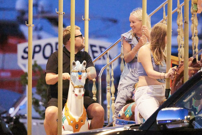 Exclusif - James Corden et sa femme Julia Carey s'amusent lors d'un tour de manège à Saint-Tropez