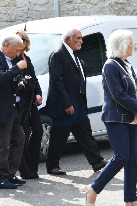 Exclusif - Dominique Strauss-Kahn (DSK) et sa compagne Myriam L'Aouffir - Inhumation de Patrick Guerrand-Hermès (Directeur d'Hermès jusque 2012 et patriarche de la famille) au cimetière de Vineuil-Saint-Firmin dans l'Oise le 20 août 2024. Exclusive - Burial of Patrick Guerrand-Hermès (Director of Hermès until 2012 and patriarch of the family) at the Vineuil-Saint-Firmin cemetery in Oise on August 20, 2024.
