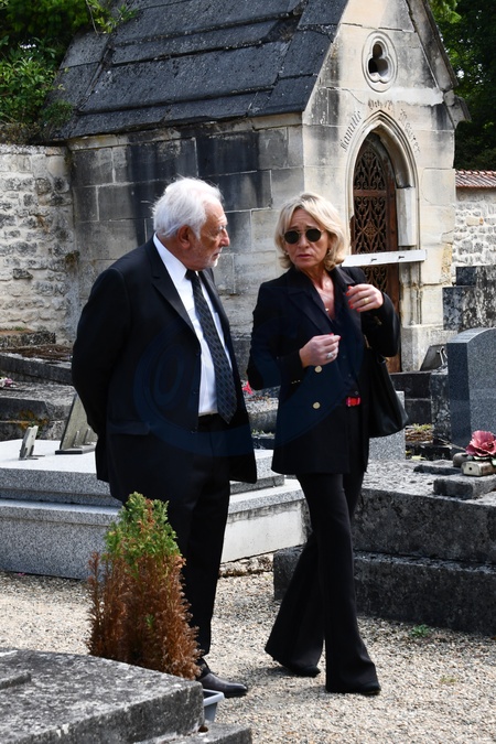 Exclusif - Dominique Strauss-Kahn (DSK) et sa compagne Myriam L'Aouffir - Inhumation de Patrick Guerrand-Hermès (Directeur d'Hermès jusque 2012 et patriarche de la famille) au cimetière de Vineuil-Saint-Firmin dans l'Oise le 20 août 2024. Exclusive - Burial of Patrick Guerrand-Hermès (Director of Hermès until 2012 and patriarch of the family) at the Vineuil-Saint-Firmin cemetery in Oise on August 20, 2024.