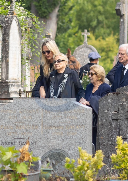 Exclusif - Madame Patrick Guerrand-Hermes, ses petits-enfants, famille et proches - Inhumation de Patrick Guerrand-Hermès (Directeur d'Hermès jusque 2012 et patriarche de la famille) au cimetière de Vineuil-Saint-Firmin dans l'Oise le 20 août 2024. Exclusive - Burial of Patrick Guerrand-Hermès (Director of Hermès until 2012 and patriarch of the family) at the Vineuil-Saint-Firmin cemetery in Oise on August 20, 2024.