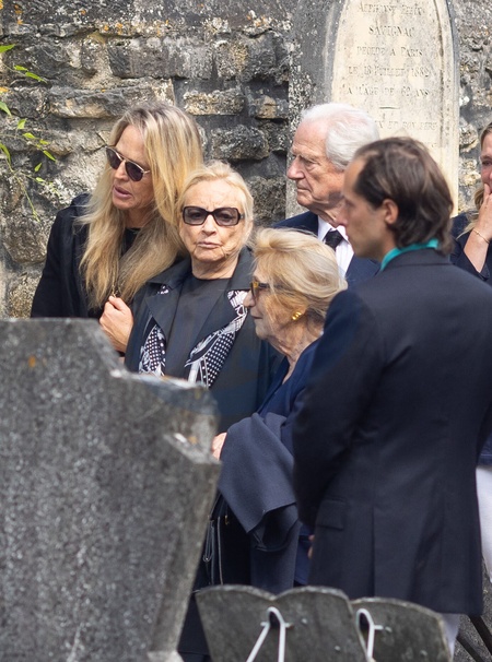 Exclusif - Madame Patrick Guerrand-Hermes, ses petits-enfants, famille et proches - Inhumation de Patrick Guerrand-Hermès (Directeur d'Hermès jusque 2012 et patriarche de la famille) au cimetière de Vineuil-Saint-Firmin dans l'Oise le 20 août 2024. Exclusive - Burial of Patrick Guerrand-Hermès (Director of Hermès until 2012 and patriarch of the family) at the Vineuil-Saint-Firmin cemetery in Oise on August 20, 2024.