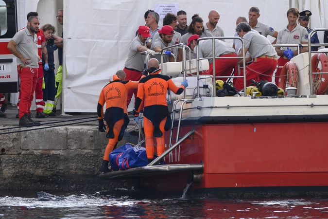 Strażacy wydobywają ciało z zatopionego jachtu Bayesa – Palermo, Włochy, 21 sierpnia 2024