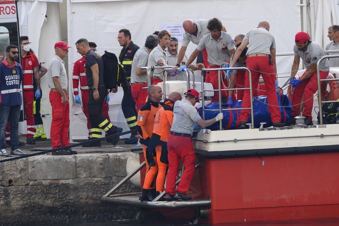 Strażacy wydobywają ciało z zatopionego jachtu Bayesa – Palermo, Włochy, 21 sierpnia 2024