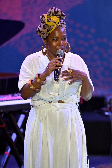 China Moses, la chanteuse américaine de jazz, présentatrice du Festival durant la seconde soirée du Nice Jazz Fest à Nice, le 21 août 2024 © Bruno Bebert / Bestimage China Moses, the American jazz singer, presenter of the Festival during the second evening of the Nice Jazz Fest in Nice, August 21, 2024