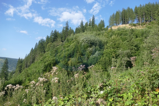 CHERNIVTSI REGION, UKRAINE - JULY 31, 2024 - A spruce forest covers the slopes of the Carpathian Mountains, Vyzhnytsia district, Chernivtsi region, western Ukraine., Credit:Yurii Rylchuk / Avalon