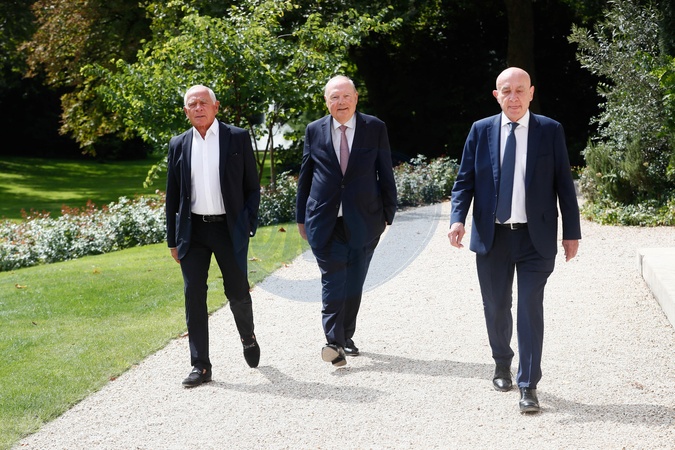Francois Patriat, président du groupe RDPI au Sénat, Herve Marseille, président de l'UDI et Claude Malhuret, président du groupe Indépendants, République et territoires du Sénat - Le président de la République française E.Macron reçoit les représentants du camp présidentiel à l'Elysée, le 23 août 2024, en vue de nommer le Premier ministre. Le chef de l'Etat doit recevoir les 23 et 26 août 2024 les leaders des formations politiques, avant de désigner le nouveau chef du gouvernement. © Christophe Clovis / Bestimage The President of the French Republic E. Macron receives the representatives of the presidential camp at the Elysée, on August 23, 2024, with a view to appointing the Prime Minister. The Head of State must receive the leaders of the political parties on August 23 and 26, 2024, before designating the new head of government.