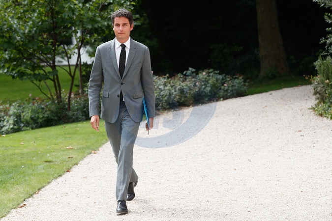 Gabriel Attal, Premier ministre sortant - Le président de la République française E.Macron reçoit les représentants du camp présidentiel à l'Elysée, le 23 août 2024, en vue de nommer le Premier ministre. Le chef de l'Etat doit recevoir les 23 et 26 août 2024 les leaders des formations politiques, avant de désigner le nouveau chef du gouvernement. © Christophe Clovis / Bestimage The President of the French Republic E. Macron receives the representatives of the presidential camp at the Elysée, on August 23, 2024, with a view to appointing the Prime Minister. The Head of State must receive the leaders of the political parties on August 23 and 26, 2024, before designating the new head of government.