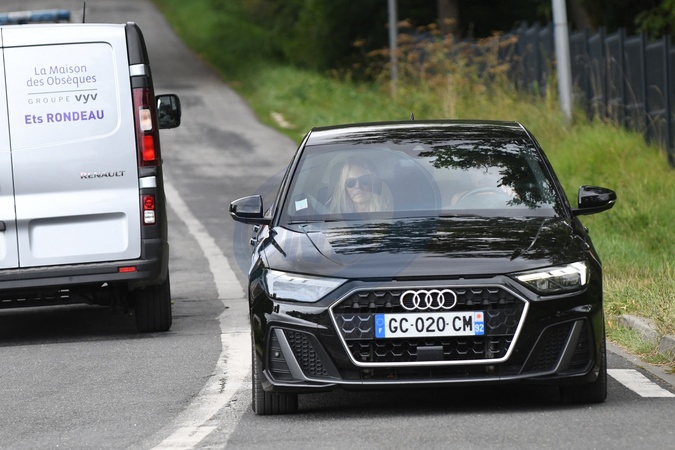Rosalie Van Breemen, l'ex-femme d'A.Delon, aperçue à la sortie de la propriété de l'acteur disparu à Douchy, le 23 août 2024. Décédé le 18 août 2024, l'acteur a rendu son dernier souffle, entouré des siens dans sa propriété de Douchy, où il sera inhumé, le 24 août 2024, auprès de ses 35 chiens dans une chapelle, construite il y a une vingtaine d'années. Rosalie Van Breemen, A.Delon's ex-wife, seen leaving the late actor's property in Douchy on August 23, 2024. The actor, who died on August 18, 2024, took his last breath surrounded by his family at his property in Douchy, where he will be buried on August 24, 2024, alongside his 35 dogs in a chapel built around twenty years ago.