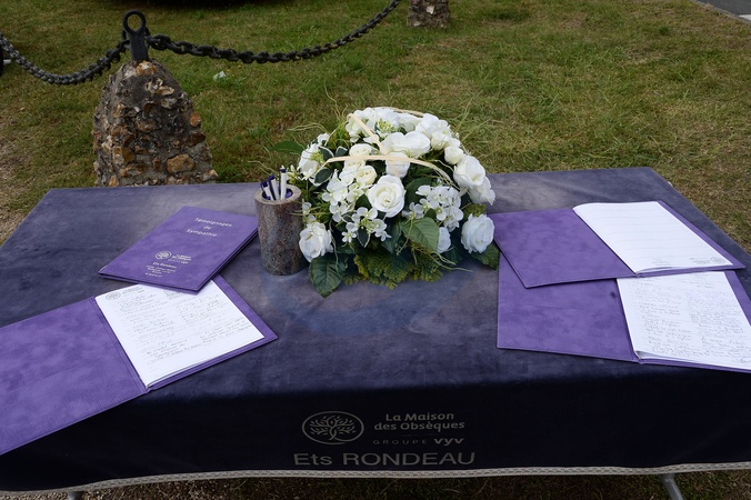 Fleurs et messages déposés par les fans devant la propriété d'Alain Delon à quelques heures des obsèques de l'acteur qui auront lieu dans la chapelle à l'intérieur de sa propriété à Douchy-Montcorbon le 24 août 2024. Flowers and messages left by fans in front of Alain Delon's property a few hours before the actor's funeral which will take place in the chapel inside his property in Douchy-Montcorbon on August 24, 2024.