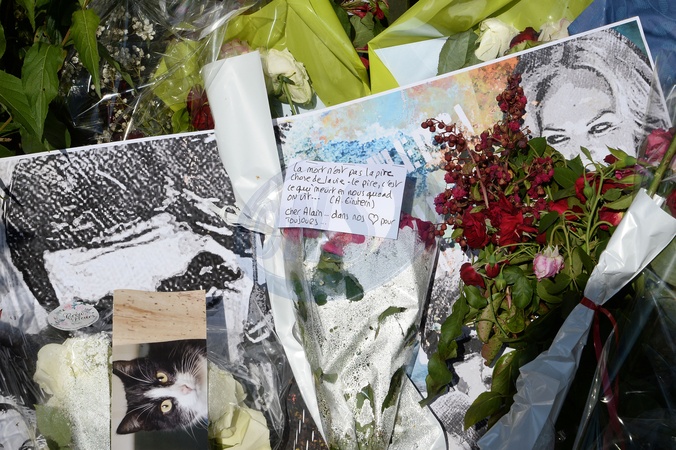 Fleurs et messages déposés par les fans devant la propriété d'Alain Delon à quelques heures des obsèques de l'acteur qui auront lieu dans la chapelle à l'intérieur de sa propriété