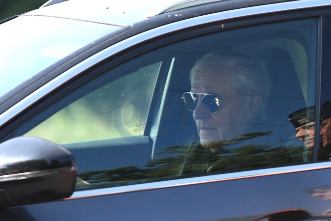 Arrivée de Monseigneur Di Falco (Jean-Michel di Falco) , qui va célèbrer les obsèques de l'acteur, à la propriété d'Alain Delon à Douchy-Montcorbon le 24 août 2024. Arrival of Monseigneur Di Falco (Jean-Michel di Falco), who will celebrate the funeral of the actor, at the property of Alain Delon in Douchy-Montcorbon