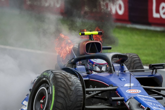 Samochód Logana Sargeanta (USA) brutalnie opuścił tor i zapalił się podczas wolnych treningów przed Grand Prix Holandii F1 w Zandvoort