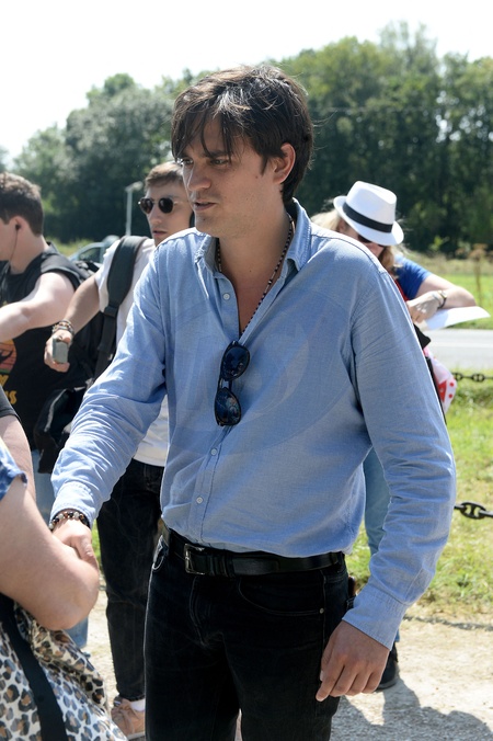 Anthony Delon et son demi-frère Alain-Fabien découvrent les hommages devant les grilles de la propriété de Douchy, quelques heures avant les obsèques de leur père, A.Delon, le 24 août 2024. Décédé le 18 août 2024, l'acteur a rendu son dernier souffle, entouré des siens dans sa propriété de Douchy, où il sera inhumé, le 24 août 2024 vers 17 heures dans une chapelle, construite il y a une vingtaine d'années. Anthony Delon and his half-brother Alain-Fabien discover the tributes in front of the gates of the Douchy property, a few hours before the funeral of their father, A. Delon, on August 24, 2024. Deceased on August 18, 2024, the actor took his last breath, surrounded by his family in his Douchy property, where he will be buried on August 24, 2024 around 5 p.m. in a chapel, built around twenty years ago.