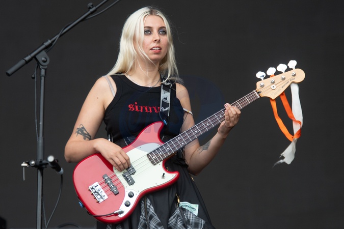 Bassist Georgia Davies of English indie rock band The Last Dinner Party performs on the Main Stage at Reading Festival 2024, Little John's Farm, Reading, England, UK on Saturday 24 August 2024., Credit:Justin Ng / Avalon