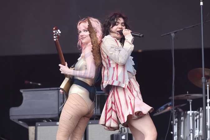 Emily Roberts and Abigail Morris of The Last Dinner Party performs at Leeds Festival 2024, Bramham Park, Leeds, 25th August 2024, Credit:Mike Gray / Avalon