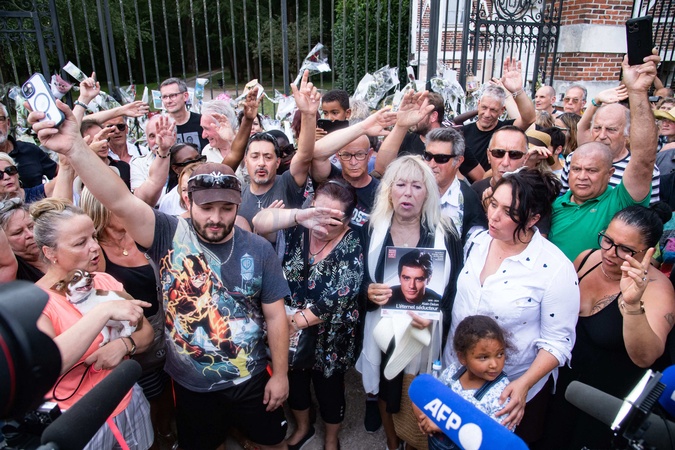 Les fans rendent hommage à Alain Delon devant la grille de sa propriété à Douchy-Montcorbon pendant ses obsèques
