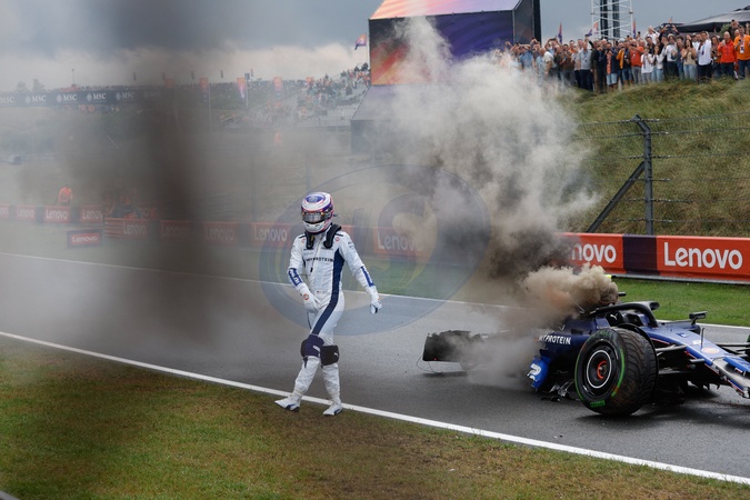 Formule 1 (F1) - Grand Prix des Pays-Bas sur le circuit de Zandvoort - 02 SARGEANT Logan (usa), Williams Racing FW46, action crash, accident, during the Formula 1 Heineken Dutch Grand Prix 2024, 15th round of the 2024 Formula One World Championship from August 23 to 25, 2024 on the Circuit Zandvoort, in Zandvoort, Netherlands -