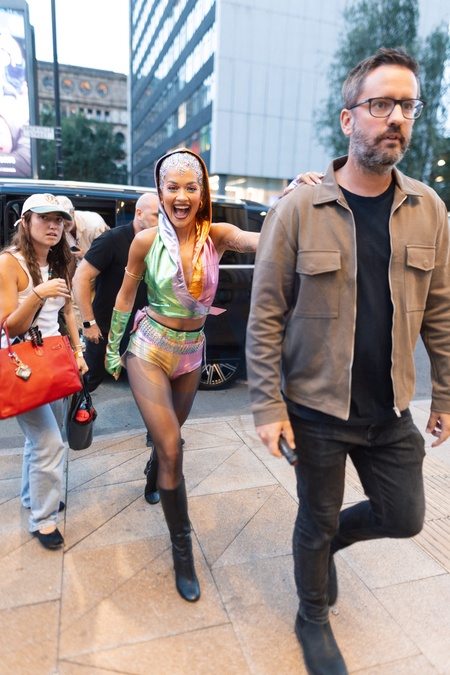 Rita Ora arrive à son concert pour la Manchester Pride à Manchester le 24 août 2024. Rita Ora arrives for her performance at Manchester Pride on 24/08/2024